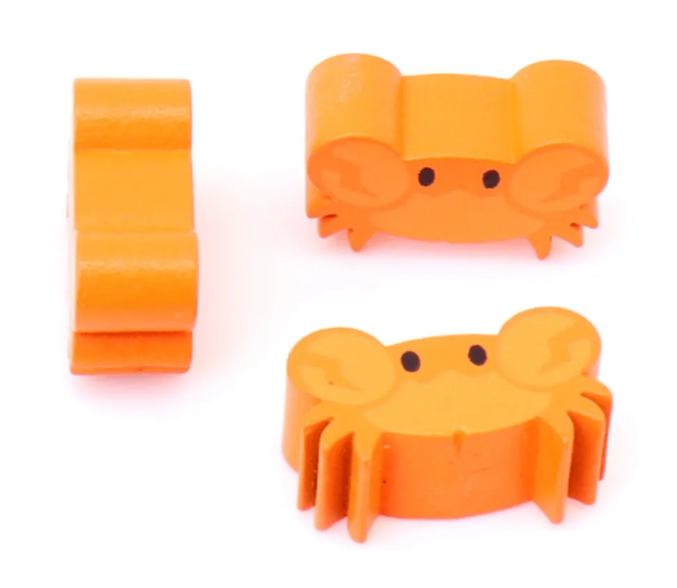Jeton de jeu en bois crabe teinté en orange. Animal marin pour reconstituer des petits mondes miniatures.