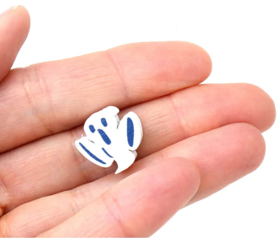 Pion de jeu fantôme. Mini fantôme en bois de 1.5 cm de haut et 1.6 cm de large.