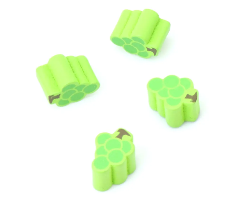 Dimensions du pion raisins verts : hauteur 15 mm x largeur 11 mm x épaisseur 10 mm