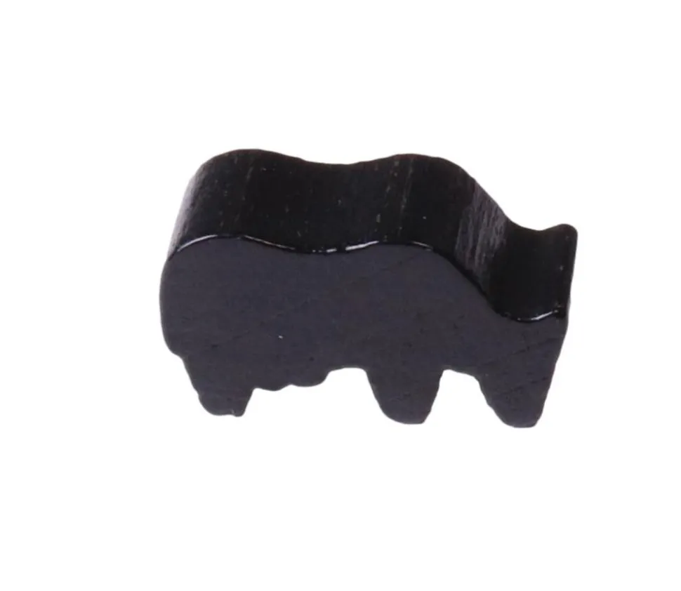 Pion de jeu en forme d’animal vache ou bœuf qui broute. Pion tout en bois teinté en noir ou en blanc, couleur à choisir.