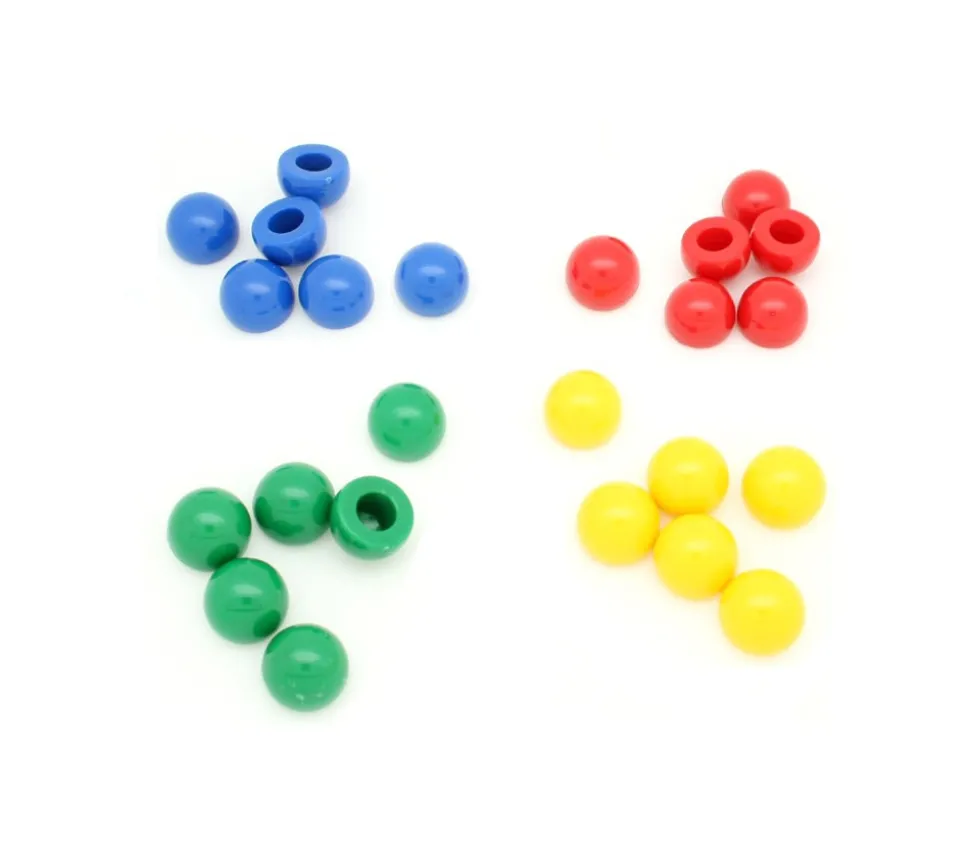 Pion plastique coloré de 1.5 cm à la base du pion, 1.2 cm de hauteur et 1.7 cm de diamètre pour la sphère