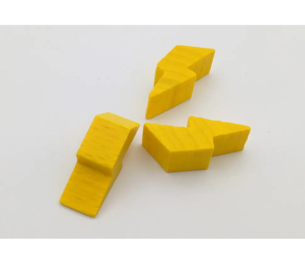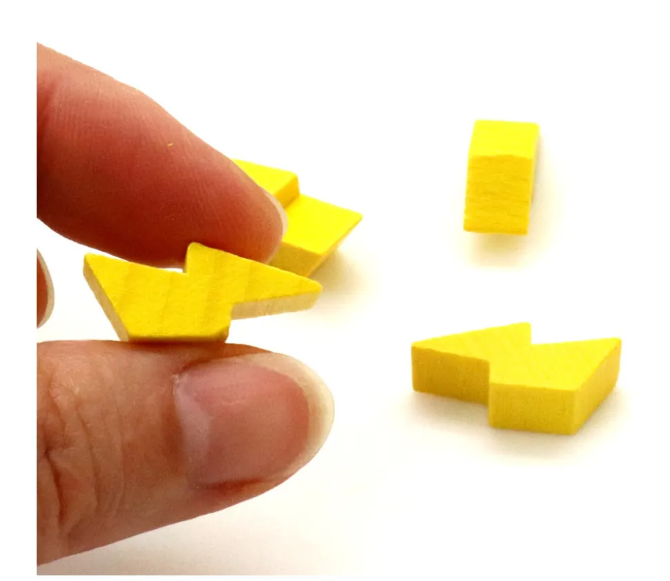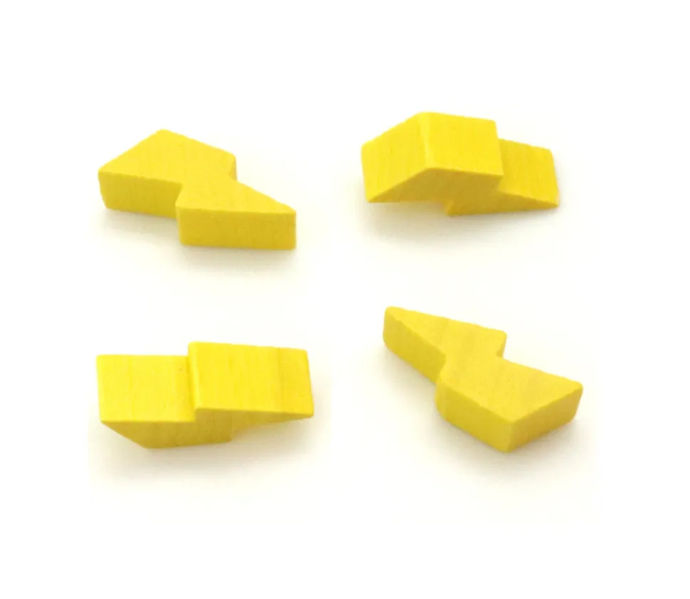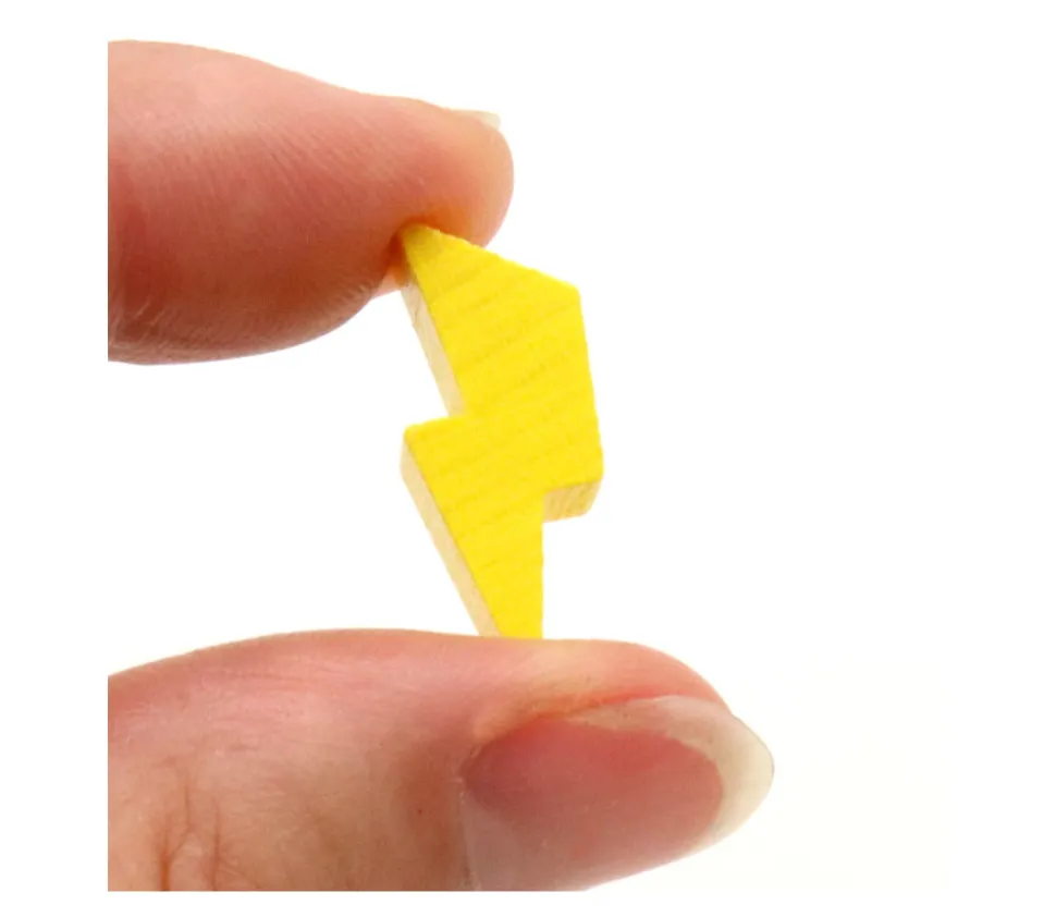 Pion éclair. Pièces en bois colorés en forme d’éclair ou foudre pouvant représenter l’énergie.