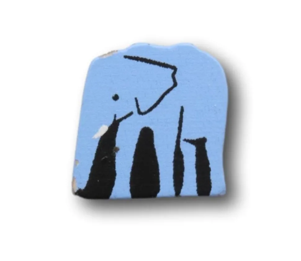 Pion éléphant bleu. Pions en bois original à la découpe en forme d’éléphant avec des lignes noirs marquants les caractéristiques de l’animal.