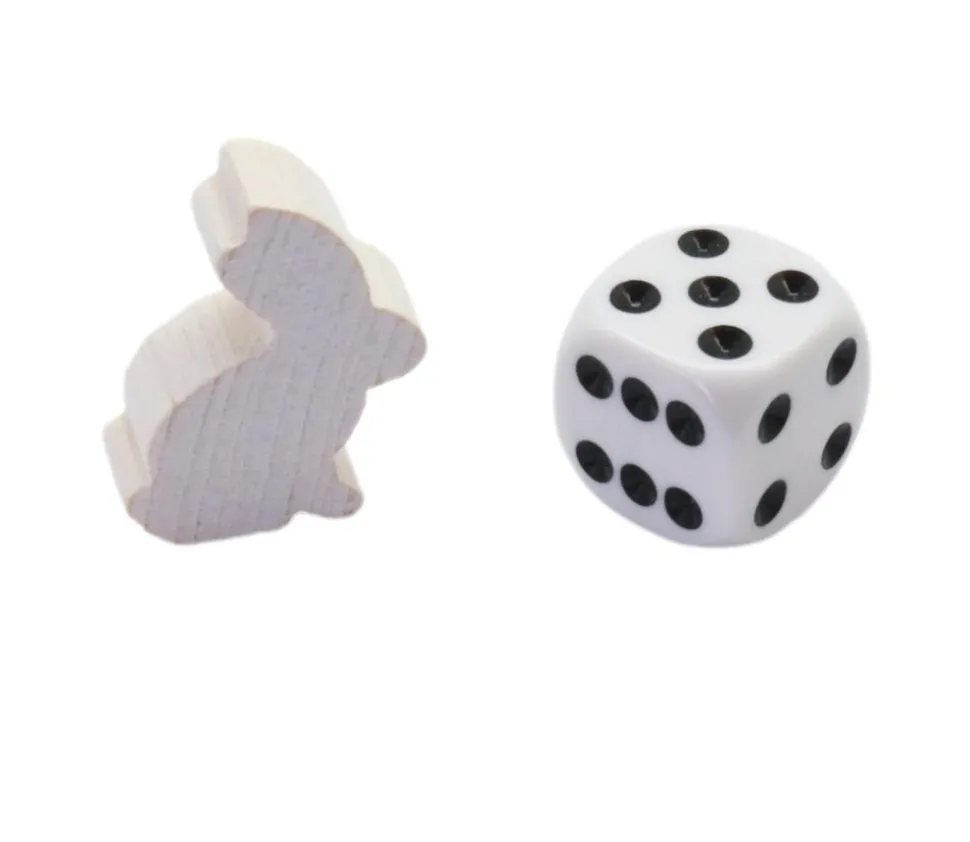 Pion lapin meeple en bois de couleur blanche. Pièces en bois colorées en forme d’animal.