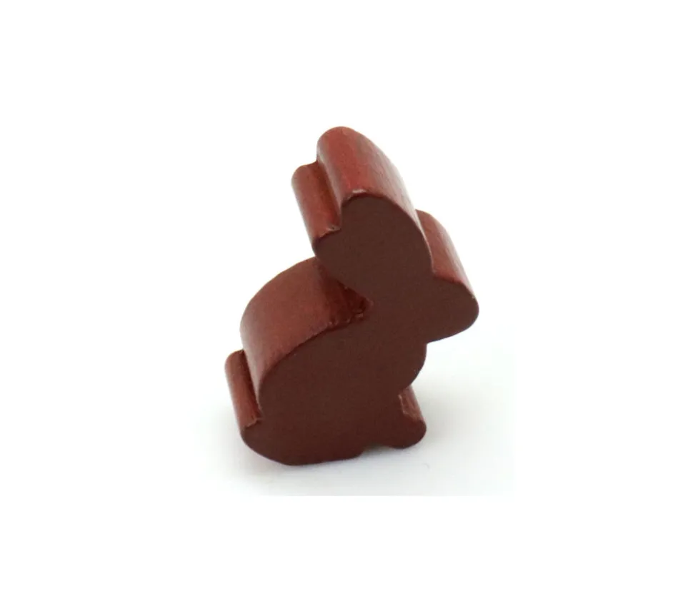 Pion lapin meeple en bois de couleur marron. Pièces en bois colorées en forme d’animal.