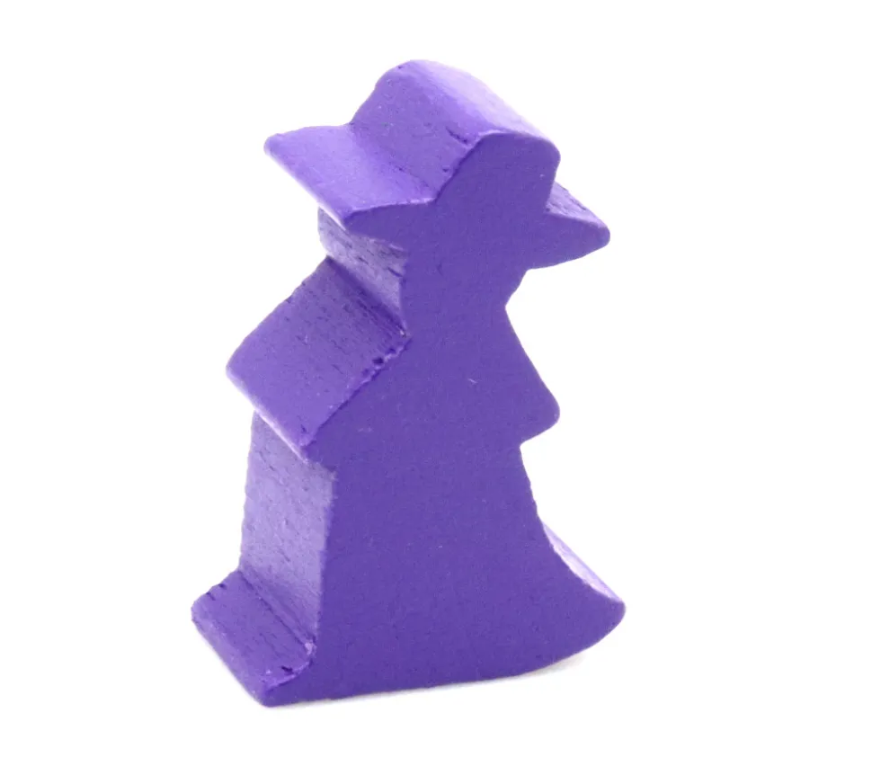 Pion en bois sorcier ou sorcière, magicien ou magicienne. Pion de jeu en bois teinté en violet.