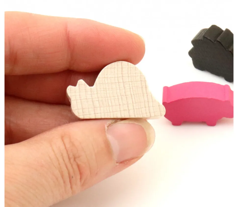 Petit escargot en bois. Pion en forme d’animaux voilà de quoi créer de beaux jeux de société ou des décorations.