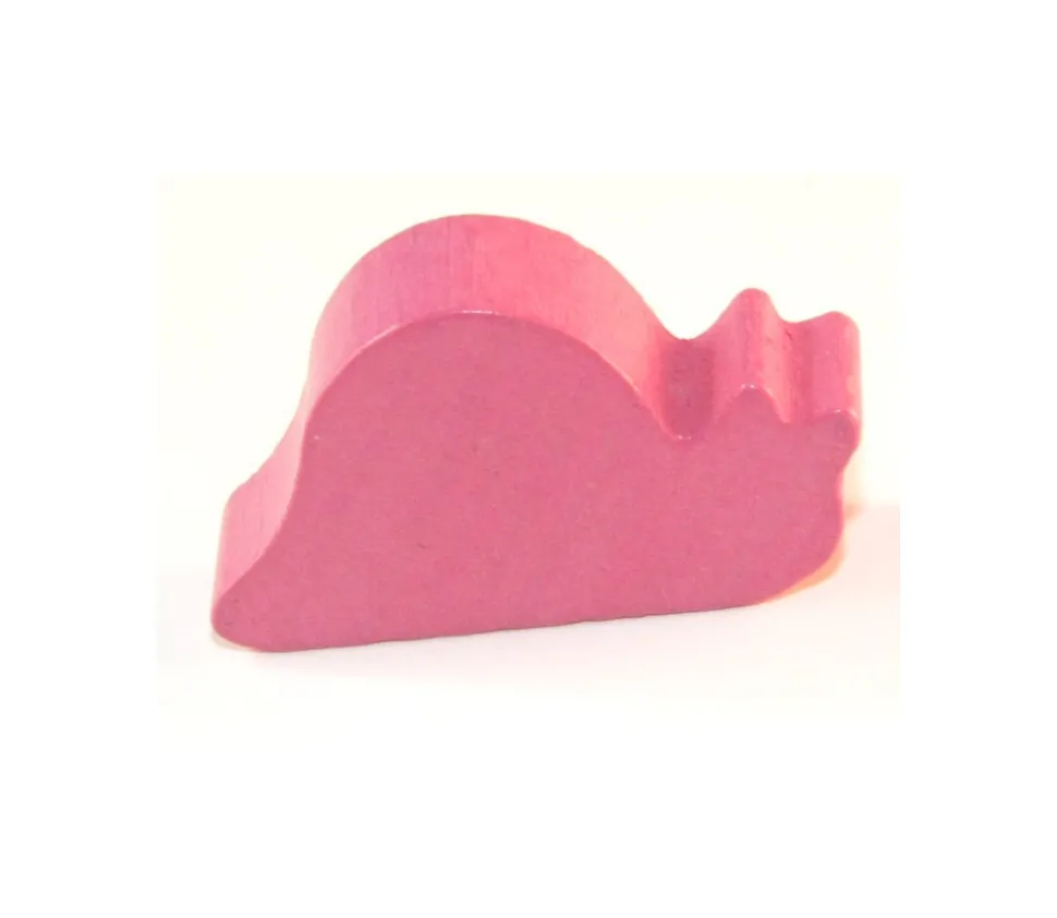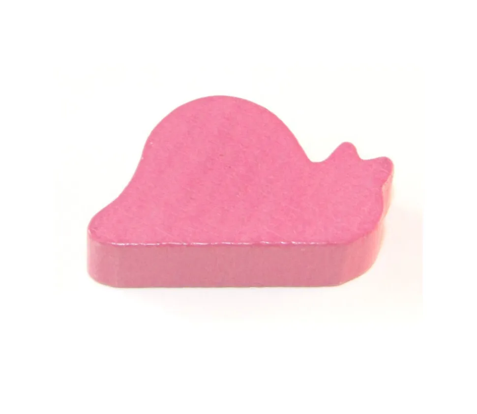 Pion escargot de couleur rose. Des pions en bois en forme d’animaux voilà de quoi créer de beaux jeux de société.