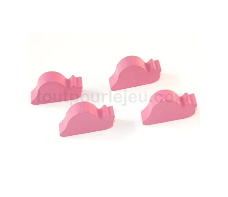 Pion escargot en bois rose. Pion de jeu en forme d’animal escargot. Pion tout en bois teinté. Création de jeux avec des animaux comme pions en combinant nos différents animaux en bois ce sera plus original que des pions quilles.