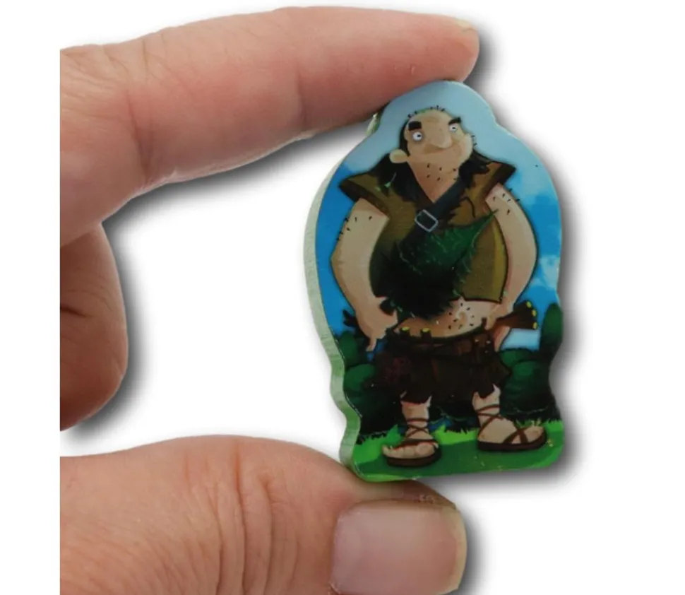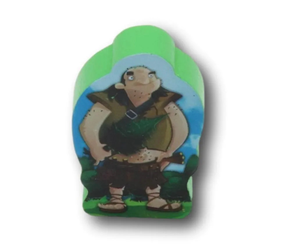 Grand pion de jeu géant représentant un ogre ou un géant. Grand pion avec un fond vert et une impression du personnage sur les deux faces.