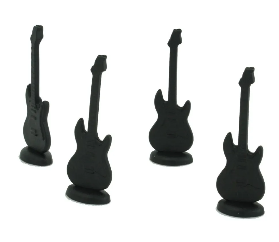 Pièces de jeu forme de guitare noire. Dimensions de la base 16 x 11 mm et hauteur de 51 mm. Pion joueur à utiliser comme pion de jeux ou jetons de gain. Pièce en plastique noire instrument de musique Vente à l’unité. Dégressif par quantité. Pion pour les joueurs musiciens et jeux musicaux ou petite décoration de table pour anniversaire ou mariage de guitariste.