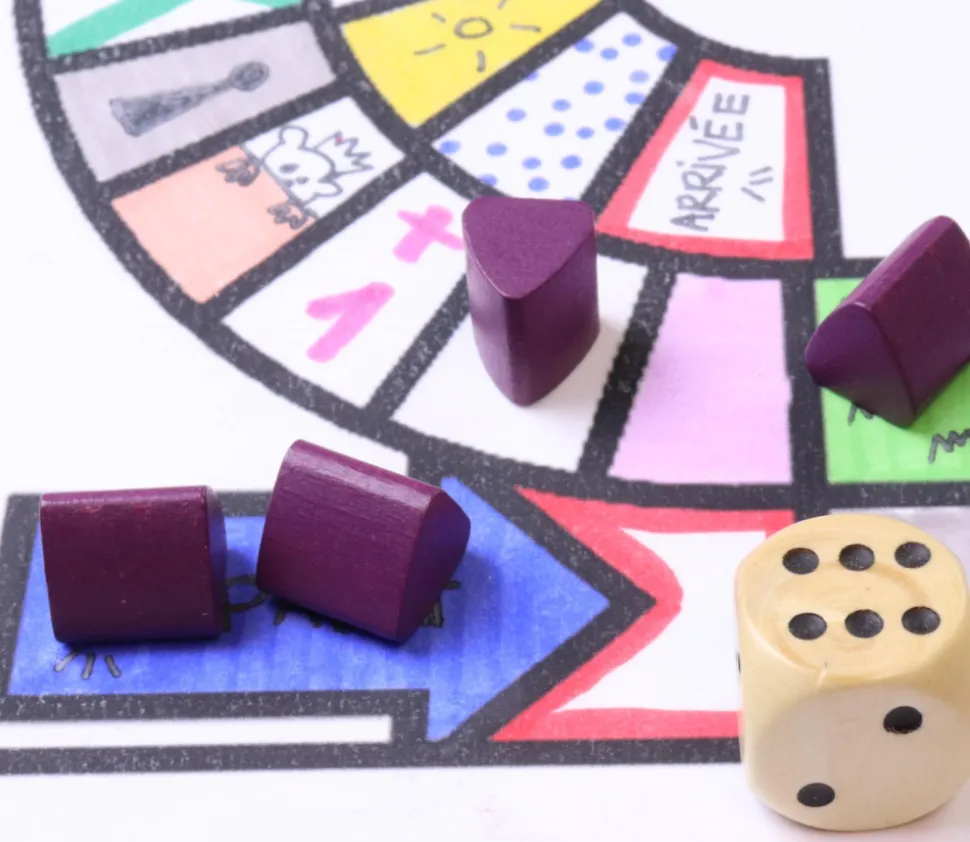 Pion de jeu bâtiment hutte ou tente pour vos jeux de société. Maison en bois de couleur violette.