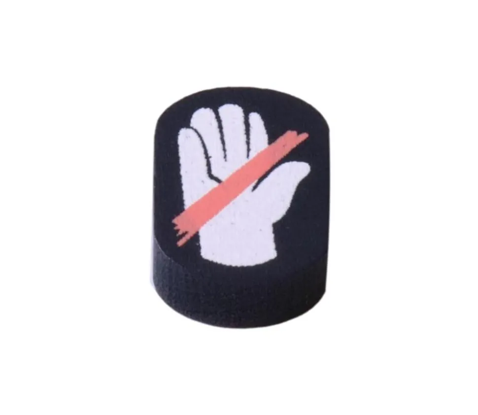 Jeton noir illustré d’une main blanche barrée en rouge sur les 2 faces.
