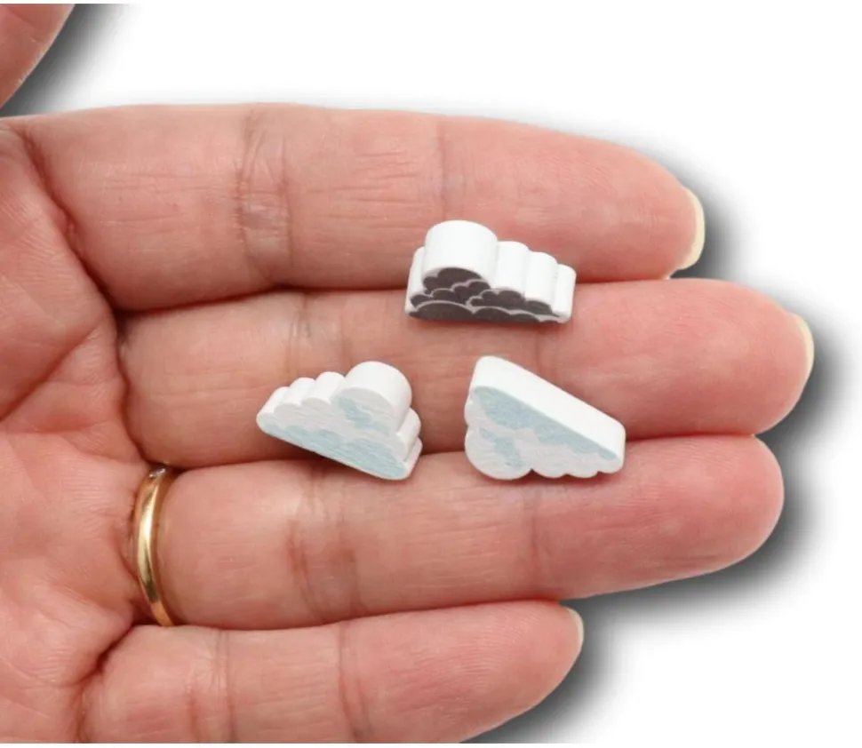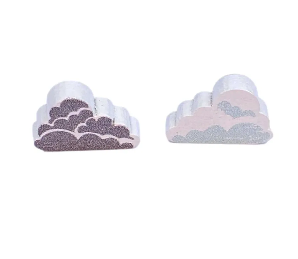Pion Nuage en bois teinté en blanc à utiliser comme ressource pour vos jeux de société. Pièces idéales pour créer vos jeux, décorations ou autres.