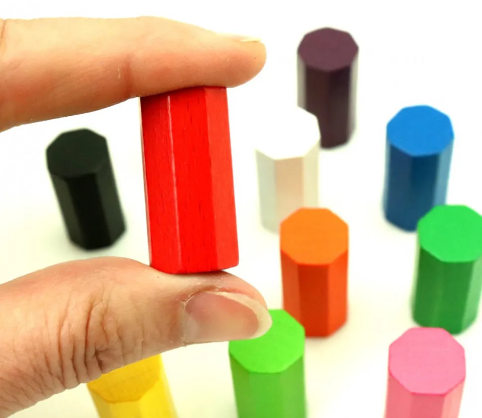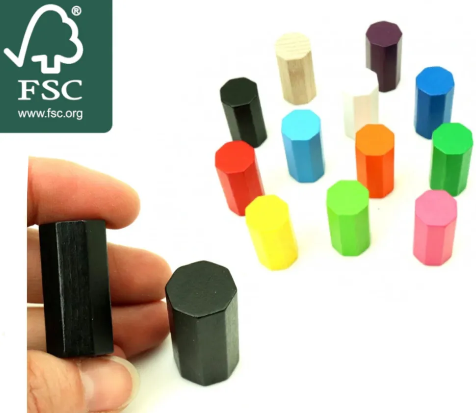 Bois coloré pour jeu de société. Le bois utilisé pour ces pions est le hêtre.