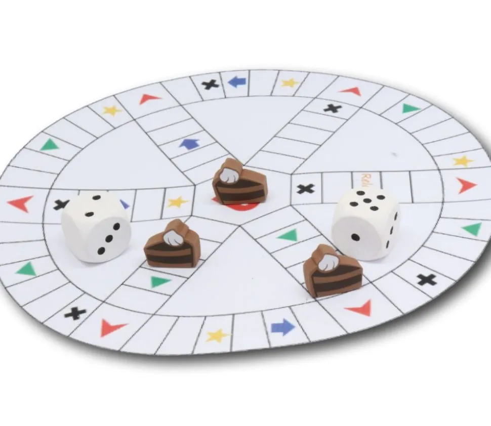 Jeton de jeu en bois part de Gâteau peint sur les 2 faces avec détails.