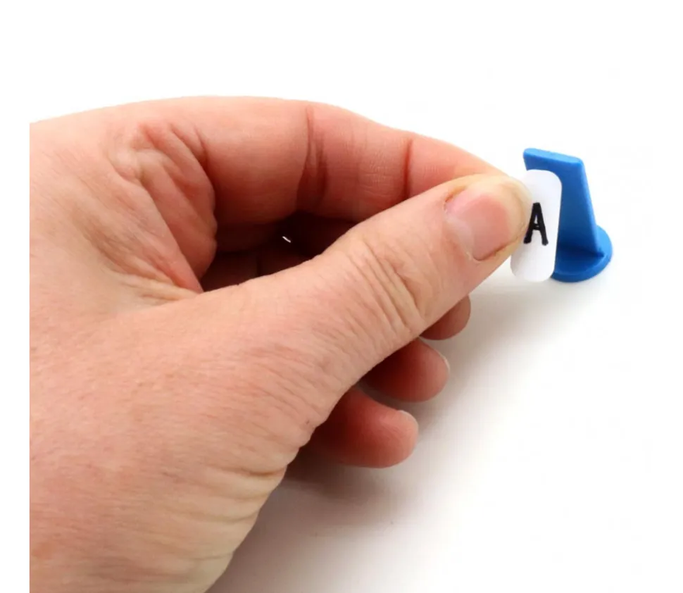 Pour personnaliser ces pions bleus, vous pouvez utiliser nos mini étiquettes allongées.