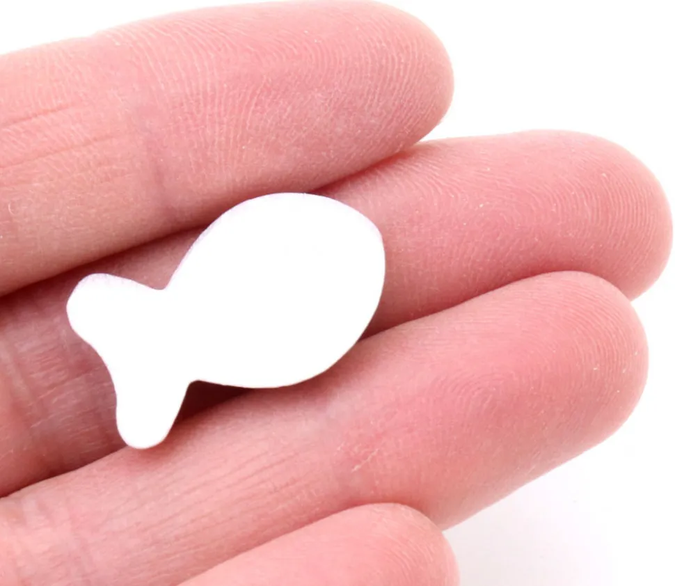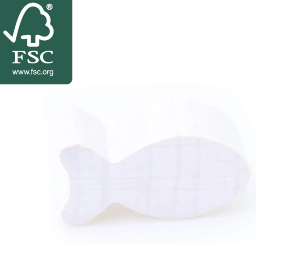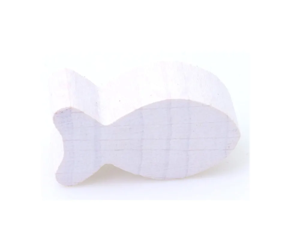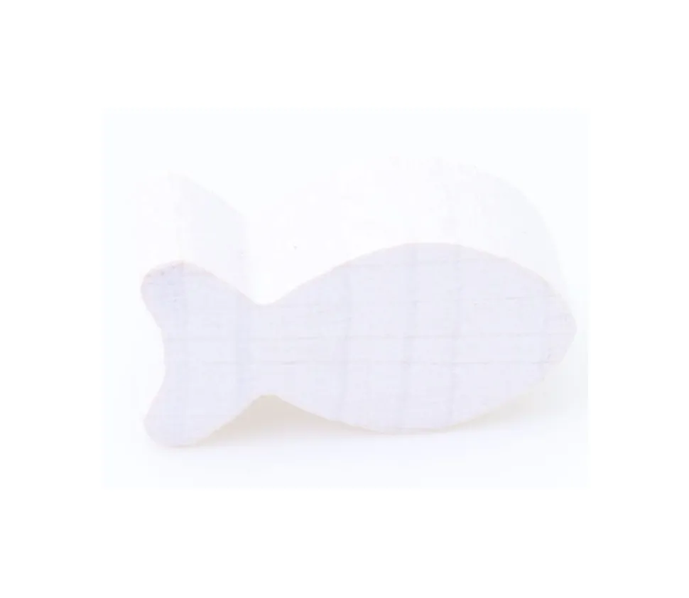 Poisson en bois teinté en blanc. Pièce miniature à utiliser comme jetons ou pions dans vos jeux de société, accessoires de décorations ou base pour vos bricolages et loisirs créatifs.
