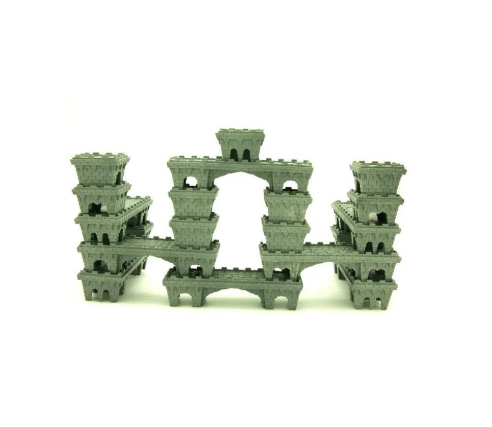 Pion Pont à empiler. Pion en forme de pont de château empilables en gris de 2 cm de haut et 8.5 x 2.8 cm.