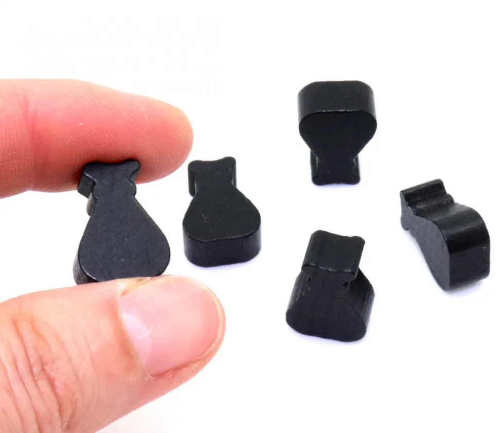 Pion de jeu en forme de sac, bourse, potion magique ou maléfique. Pièce en bois de couleur noir, jeton trésor pour vos jeux de société. Pièce en bois forme de sac noir qui peut servir de pions ou de récompenses dans vos jeux.