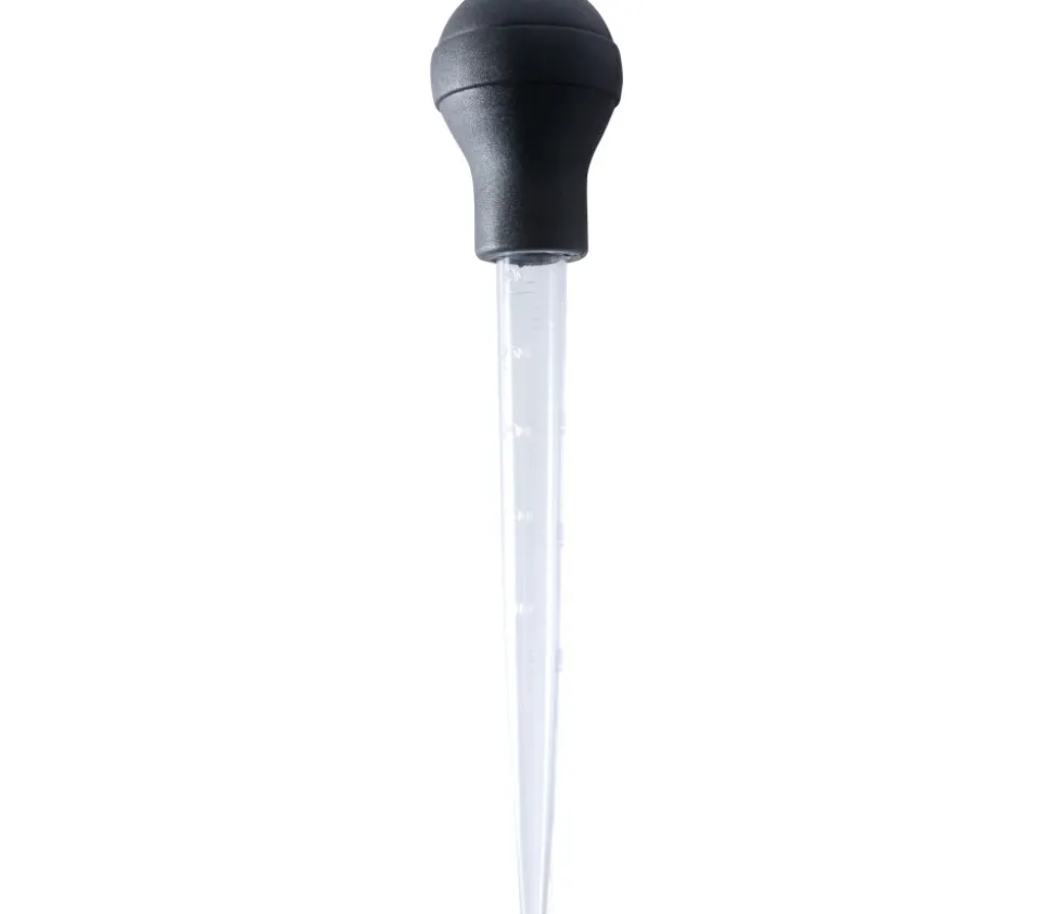 Matériel de biologie indispensable pour toutes les expériences : la pipette XXL en plastique avec poire de remplissage en caoutchouc.