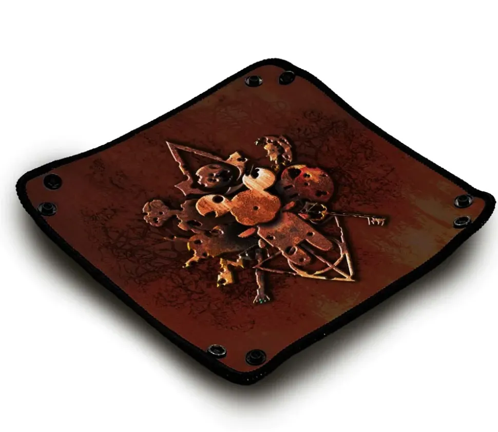 Avec son décor mystique sur fond marron, elle apporte une touche unique à votre expérience de jeu. Cette piste souple de 21 x 21 cm s’enroule facilement, se pose à plat ou se fixe grâce à des boutons-pression pour créer une forme de cuvette, évitant ainsi que les dés ne tombent.
