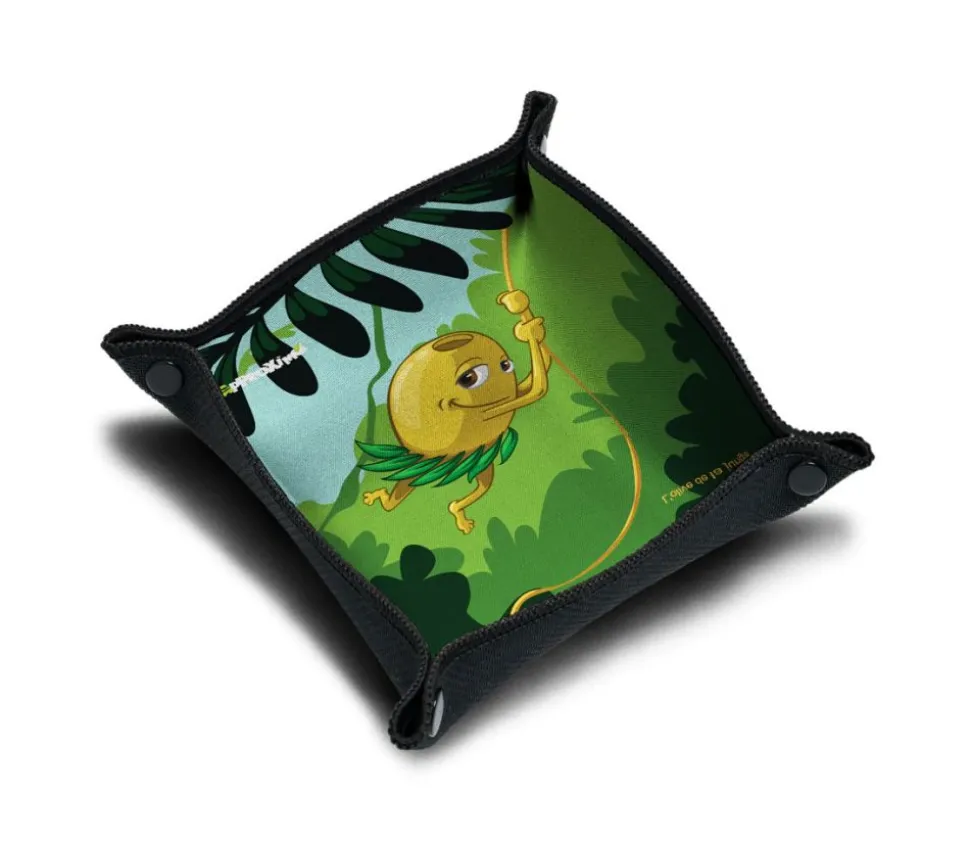 Pratique, la piste de dés jungle mesure 21 cm par 21 cm. Elle se replie pour former un espace fermé pour jeter les dés. Ainsi, vous pouvez lancer vos dés sans que ceux-ci ne tombent de la table de jeu.