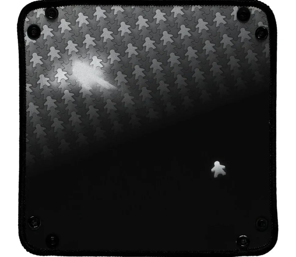 Mini piste noir et grise avec un design de gamer meeples. Un meeple perdu pour ce joli design.
