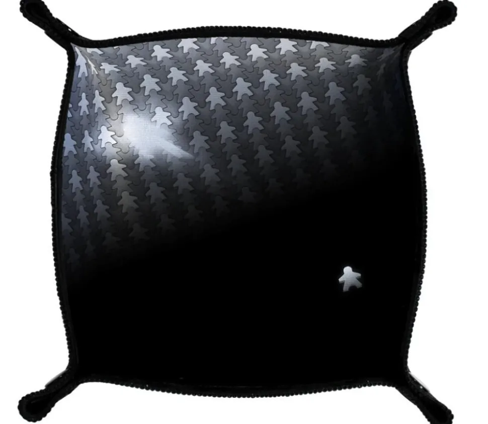 Petite piste de dés à jouer de 21 x 21 cm noire avec illustration : le meeple perdu.