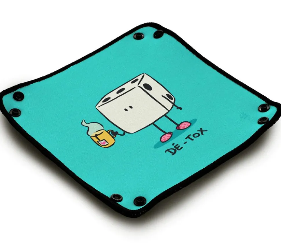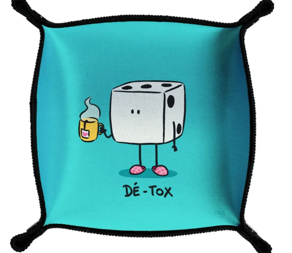 Petite piste de dés souple fun avec illustration amusante Dé-tox. Piste de taille de 21 x 21 cm.