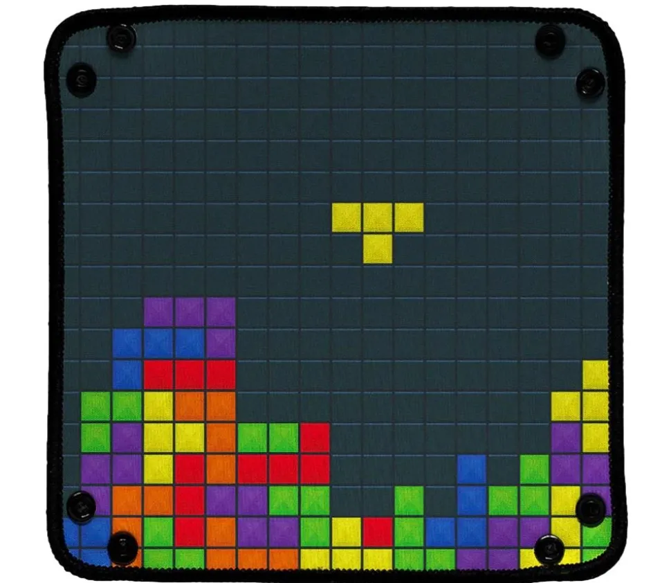 Petite piste de dés compacte avec clips de 21 x 21 cm. Décor Retro Block style jeu tétris.