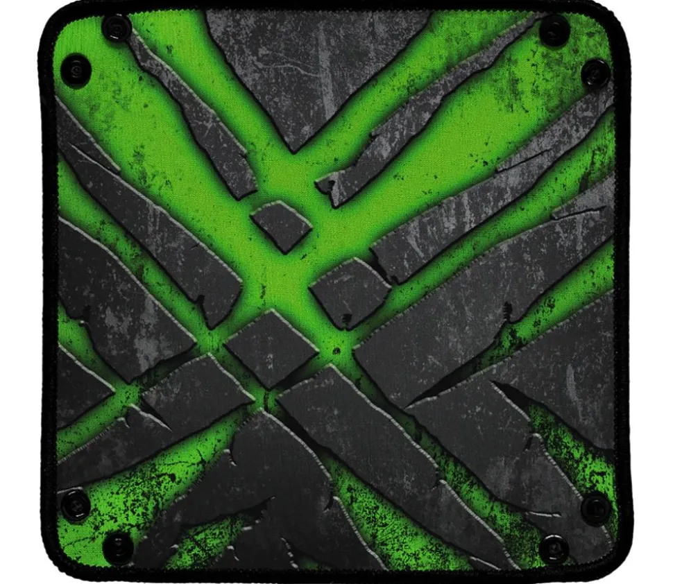 Piste compacte que vous pouvez rouler ou mettre à plat pour le stockage ou le rangement. Des clips aux 4 coins vous permettent de lui redonner rapidement sa forme initiale. Piste carrée noire et verte motif métal craquelé.