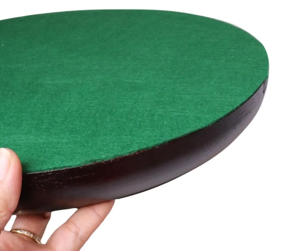 Piste de dés en bois marron ronde de 35 cm de diamètre (dimensions extérieures). Livrée avec 5 dés de 16 mm. Bords de la piste pour les dés à jouer en bois arrondie. Piste pour jeu de dés yam, 421, jeux de dés… Piste ronde avec partie centrale en feutrine verte. Idéal pour tous vos jeux de dés. Bois couleur foncée.