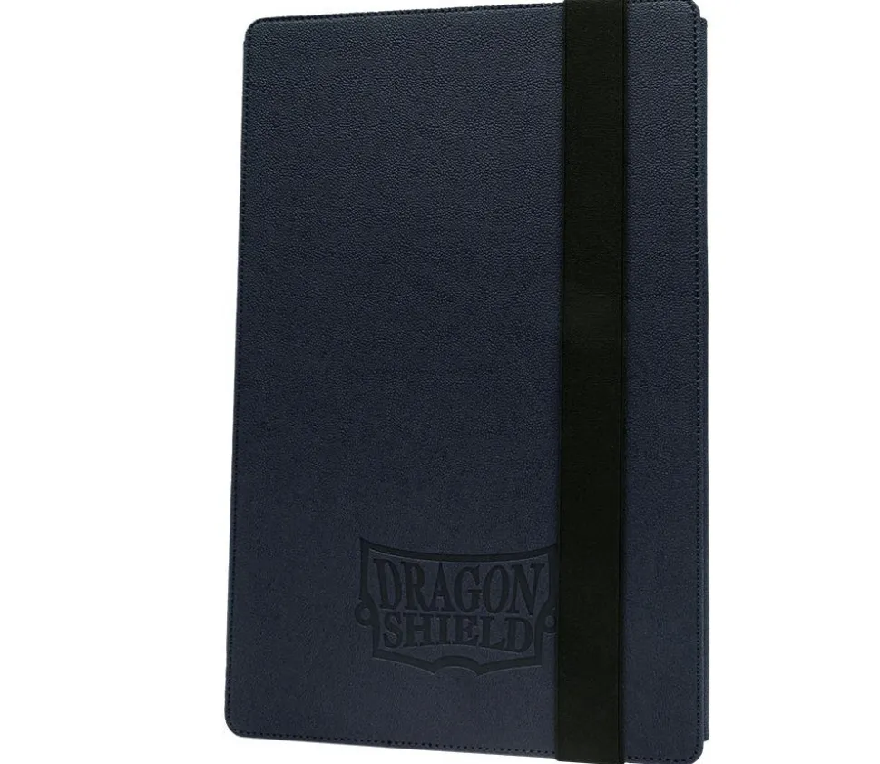 L’extérieur est recouvert d’une belle protection bleu nuit imitation cuir décor Dragon Midnight Blue. Un élastique large noir permet de maintenir le porte cartes fermé et ainsi garder vos cartes en place même si la partie n’est pas finie. Portfolio Playmat de voyage ou pour jouer en extérieur.