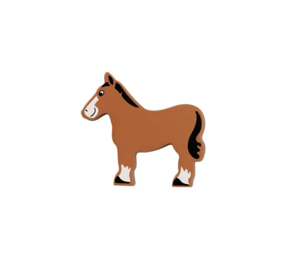 Pion poulain en bois. Pion de jeu en bois très réaliste peint recto et verso. Dimensions 75 x 69 x 15 mm. Petit bébé cheval en bois jouet marron avec crinière noire. Animal de ferme poulain peint. Pion de jeux de société ou jouet pour créer un mini monde. A combiner avec d »autres animaux pour création de mini ferme en bois avec ses jouets issus du commerce équitable.