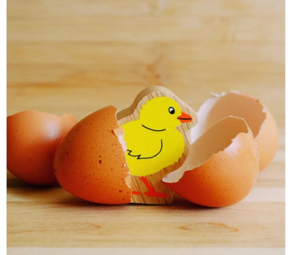 Dimensions du pion poussin en bois peint : 4.8 x 3.8 x 2.5 cm