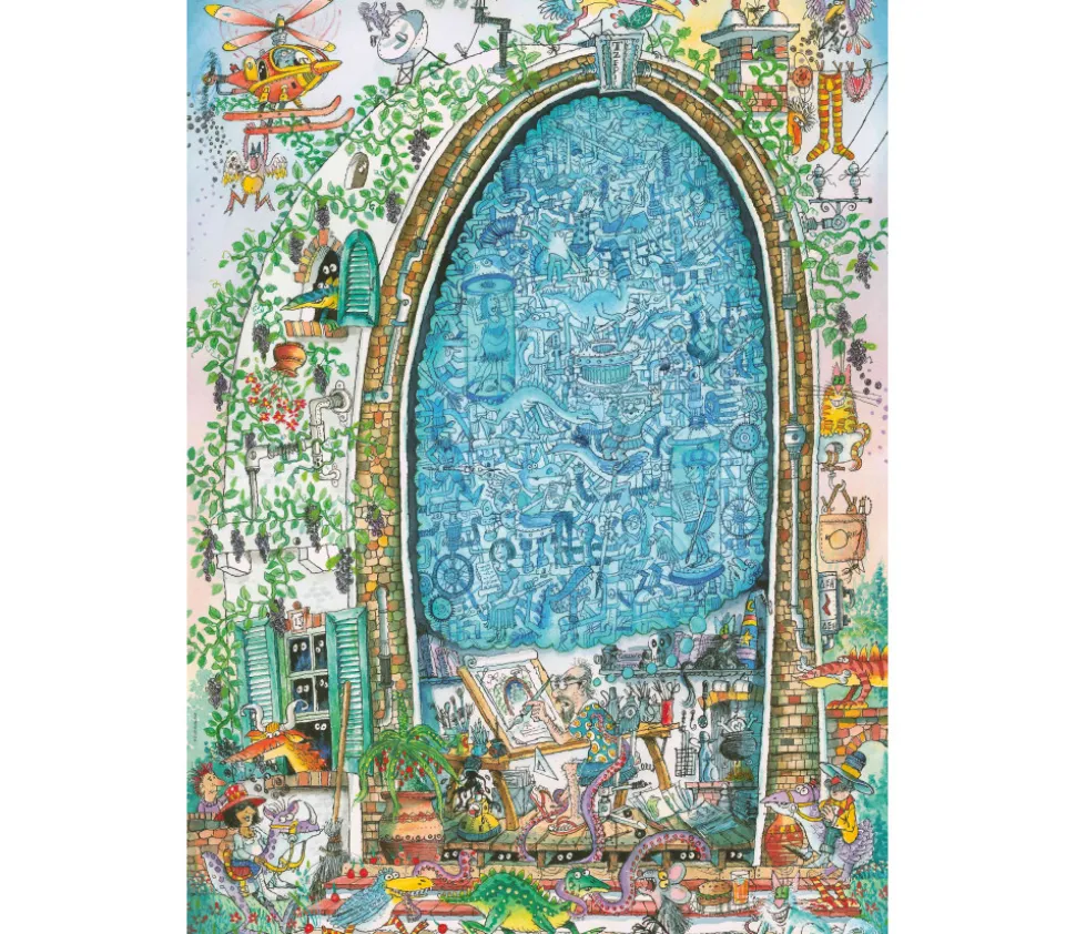 Puzzle de 1000 pièces dessin artistique. Belle illustration : décor façade de maison avec personnages rigolos. Très joli puzzle avec découpage des pièces haute qualité. Puzzle 1000 pièces à monter seul ou à plusieurs. Puzzle série comics dimensions 70 x 50 cm dans une belle boite triangulaire. Puzzle HEYE.