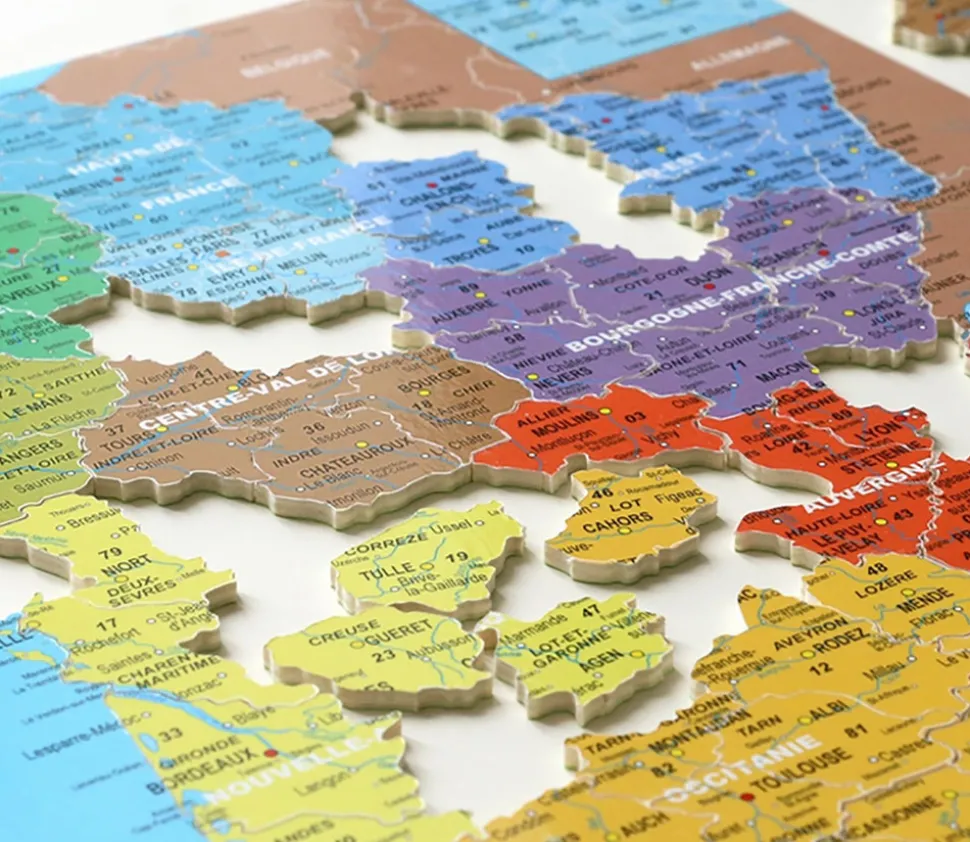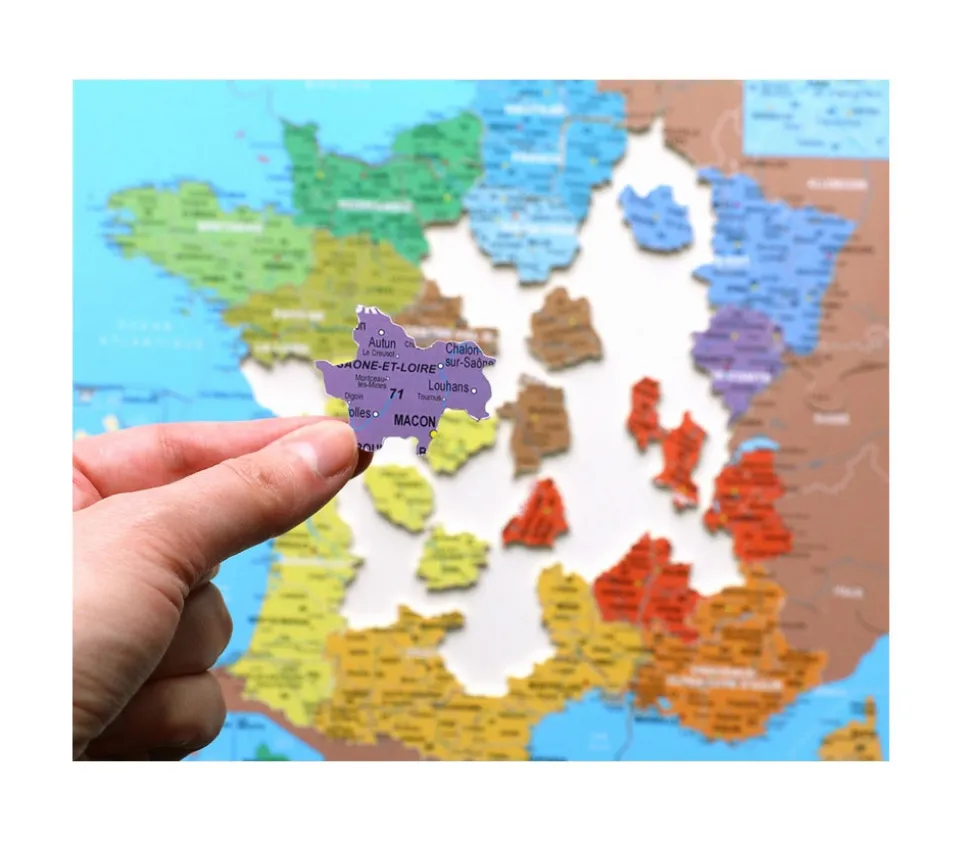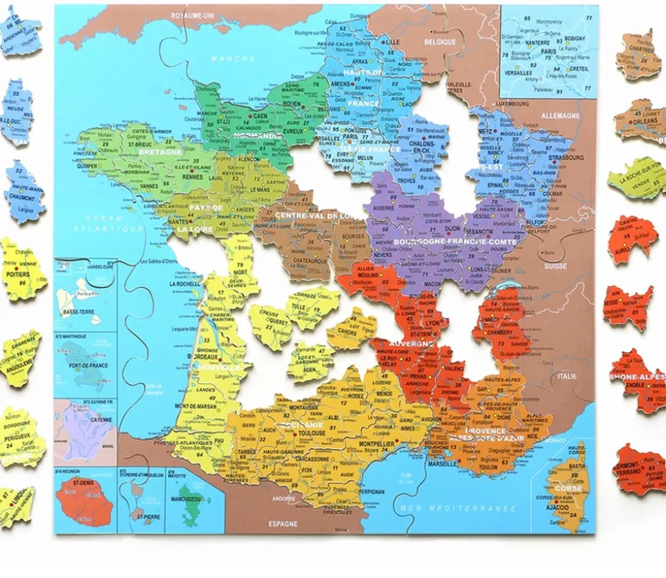 Puzzles en bois enfant 100 pièces sur le thème des régions et des départements de France