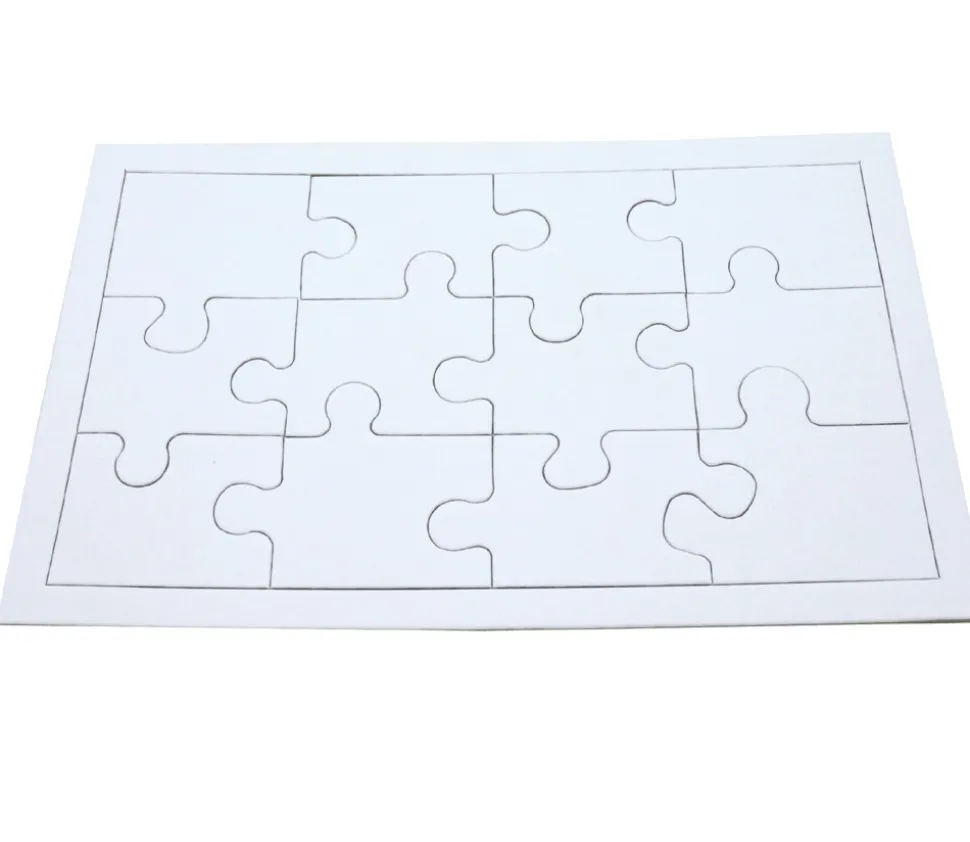 Puzzle rectangulaire en carton blanc de 12 pièces à personnaliser. Accessoire de jeu loisirs créatif.