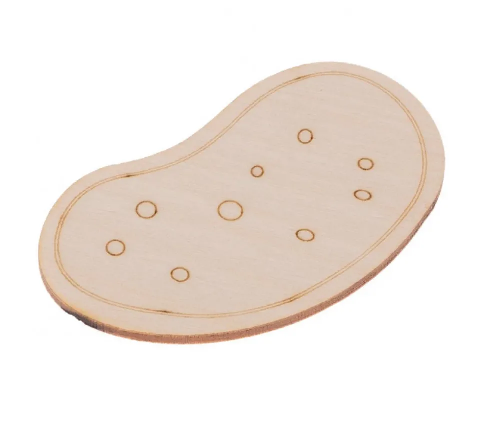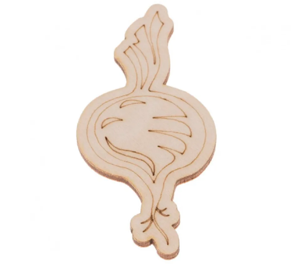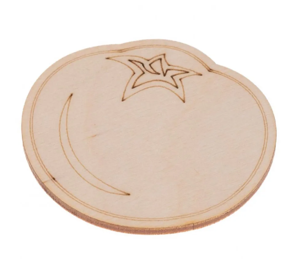 Jeu en bois adapté aux mains des enfants et à la manipulation qui servira de support à l’enseignement de l’alimentation, découverte des légumes.