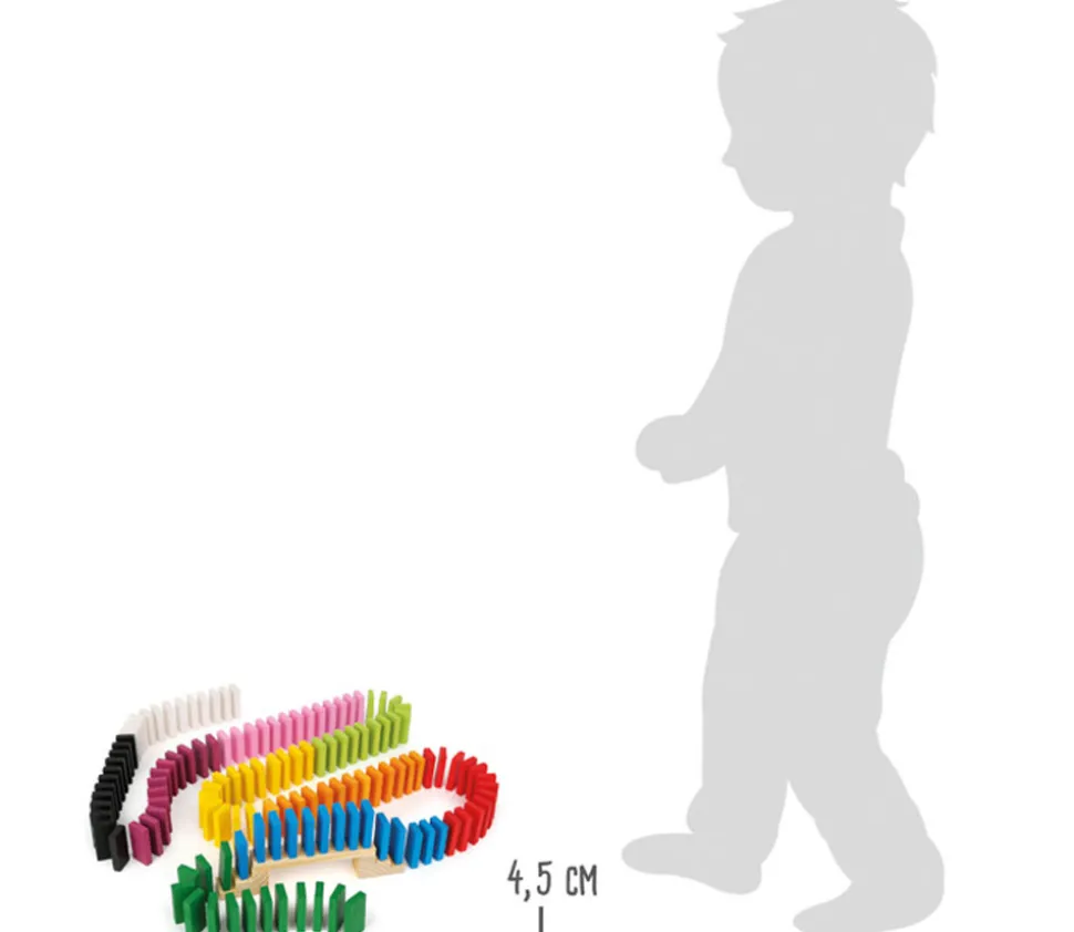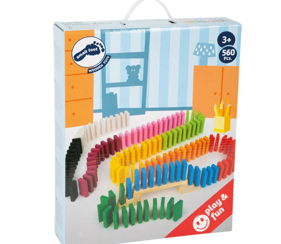 Boite de 560 dominos aux belles couleurs arc en ciel pour faire un parcours ou à utiliser comme support de travail en classe.