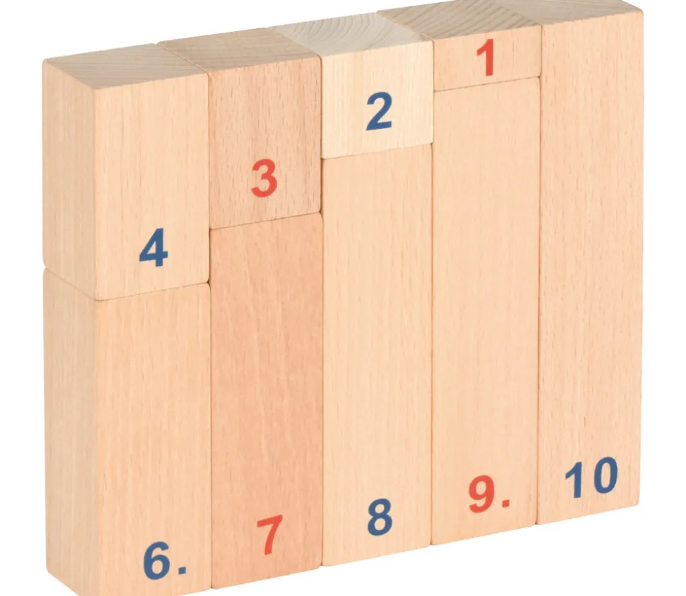 Jeu mathématiques bâton de calcul comprenant 10 pièces rectangulaires en bois naturel représentant les chiffres de 1 à 10.