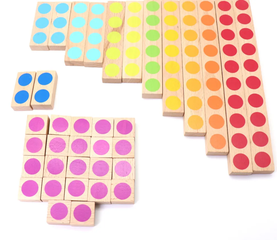 Jeu mathématiques bâton de calcul comprenant 36 pièces rectangulaires en bois naturel représentant les chiffres de 1 à 10.