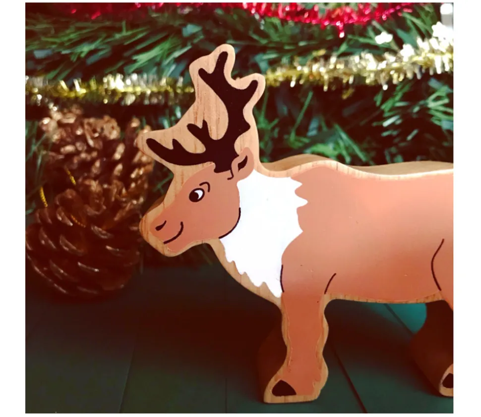 Animal en bois de caoutchouc teinté idéal pour décoration de Noël.