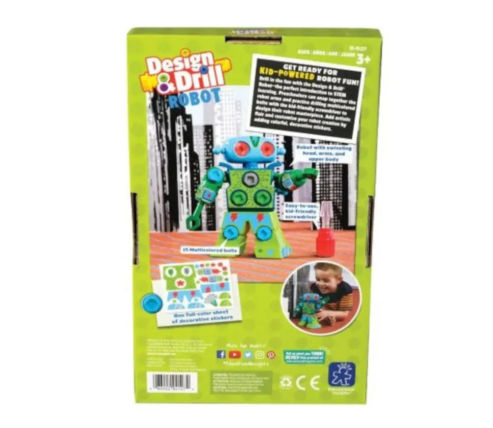 Robot à visser avec tournevis. Visser les boulons à l’aide du tournevis fourni pour customiser ce drôle de robot. Super matériel pour la motricité fine pour créer un robot personnalisé. Kit de construction mécanique. Un jouet attirant pour les enfants. Robot de 20 cm en plastique avec 15 boulons, 1 tournevis et des stickers de personnalisation. Matériel approuvé STEM, il permet de travailler les compétences moteurs, d’expérimenter, essayer et comprendre. Robot Learning ressources. Robot robuste avec tête, bras et haut du corps pivotants.