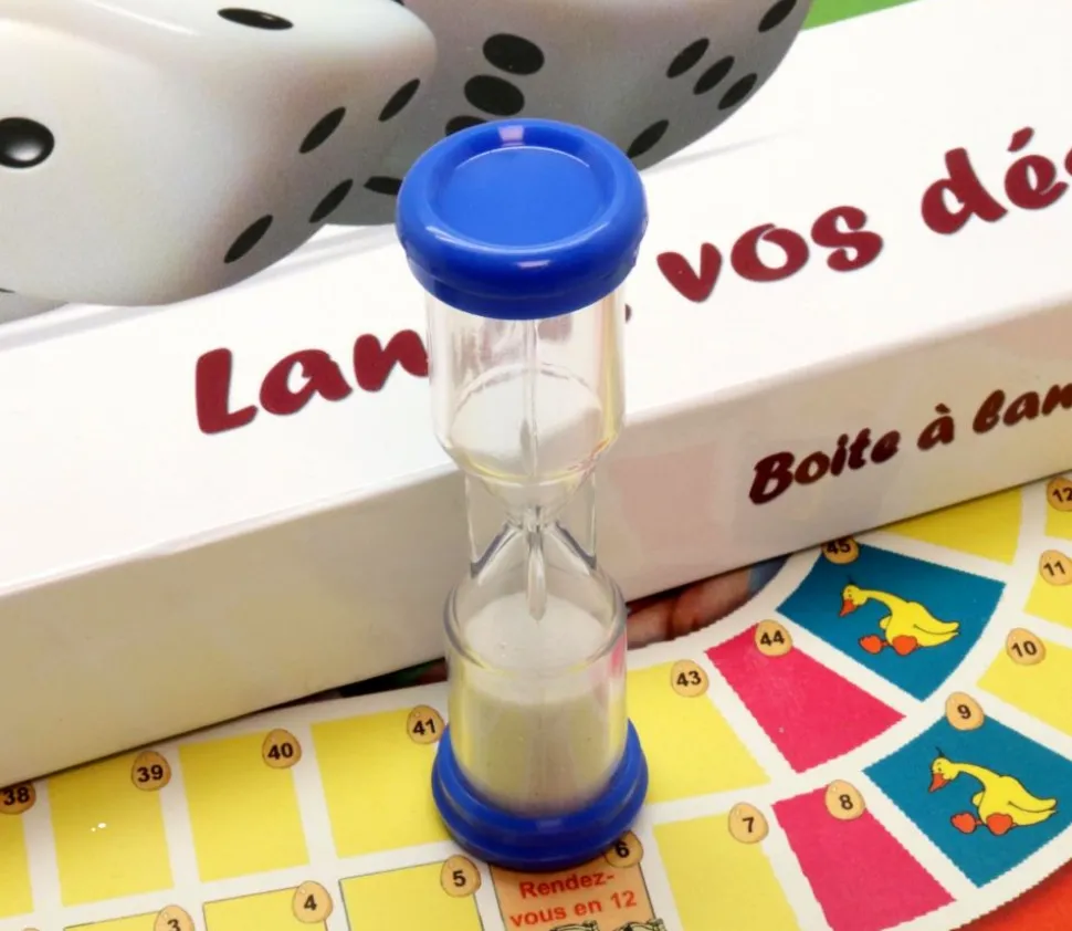 Ce sablier de 90 secondes est un outil pratique et élégant pour rythmer vos parties de jeux ou vos activités chronométrées.