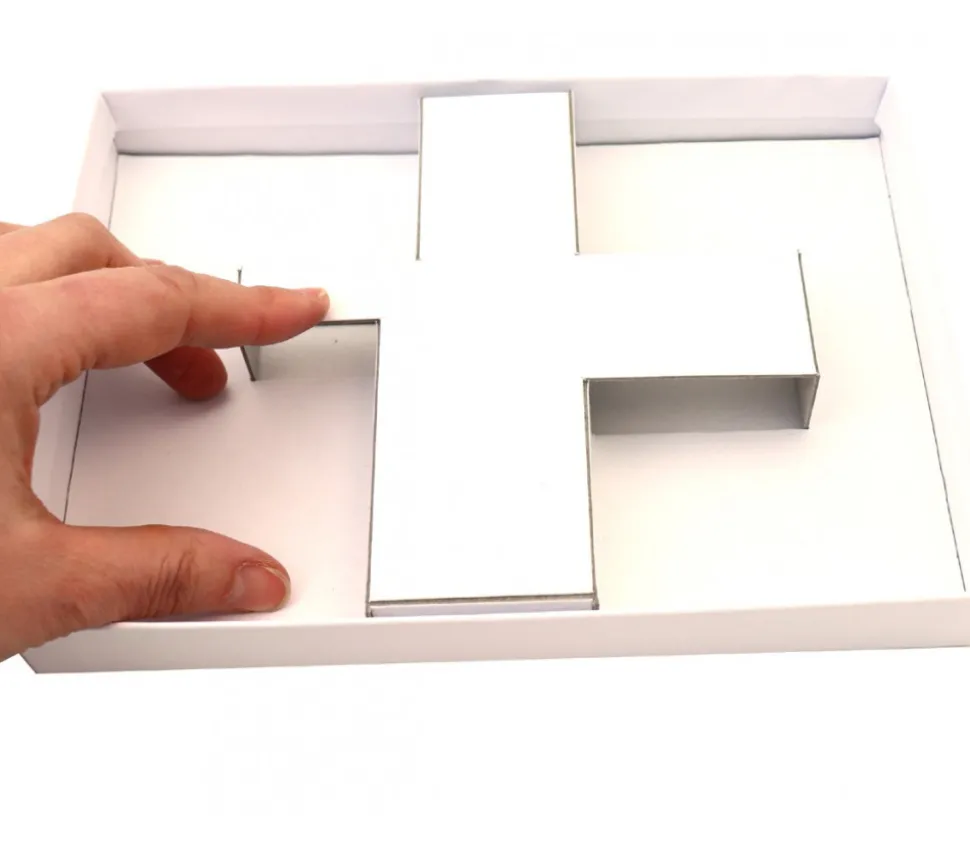 Calage seul en carton pour mettre à l’intérieur de la petite boite de jeux R1. Sabot cartonné blanc avec 4 emplacements de rangement pour séparer vos accessoires de jeux à l’intérieur de la boite. Boite vendue séparément. Calage livré à plat à glisser à l’intérieur de votre boite de jeu. Organisateur de rangement pour caler vos éléments dans la boite.