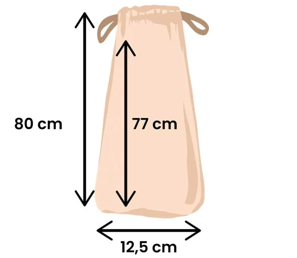Longueur du sac 80 cm et largeur de 12 cm. Taille idéale pour ranger des accessoires de jeux de société de grande longueur.