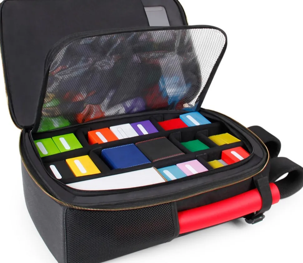 Le sac à dos ENHANCE dispose d’un grand intérieur spacieux conçu pour ranger jusqu’à 7 600 cartes, et comprend des poches extérieures ainsi qu’une poche filet avec des sangles conçues pour contenir des tapis de jeu. Parfait pour tournois, festivales et soirées de jeux. Chargez le sac à dos et partez à votre prochain rendez-vous jeu complètement équipé pour passer un bon moment.