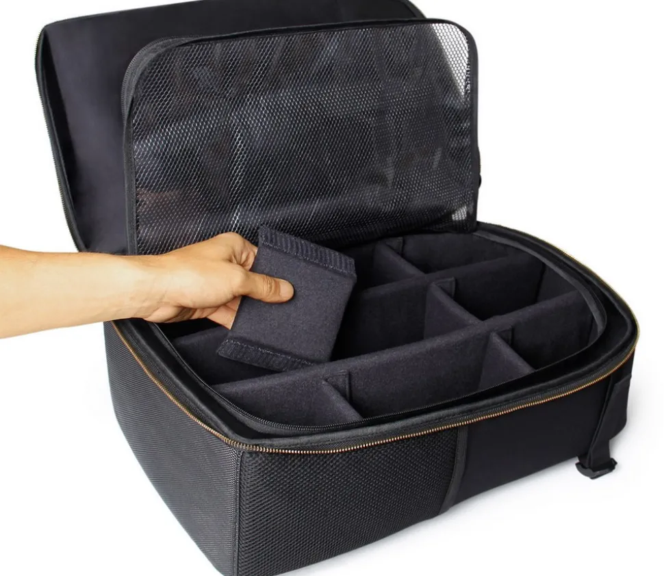 Les différents compartiments de l’intérieur du sac sont modulables à souhait avec des diviseurs renforcés ajustables.